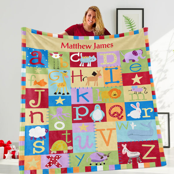 Kids Animal Alphabet - Personalized Custom Fleece Blankets with Your Child's Name - Medium and Large Sizes-001