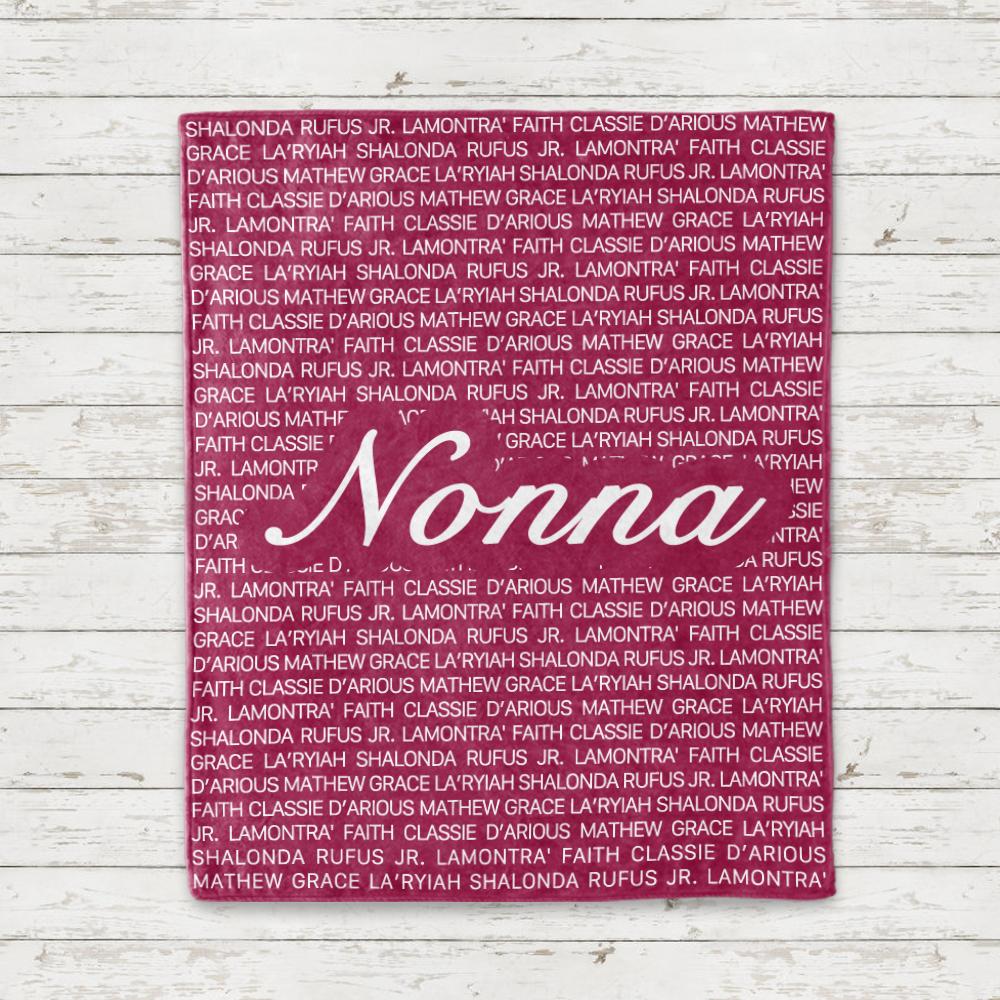 Personalize this blanket with your Nickname of a loved one & her grandkids' or kids' names!