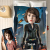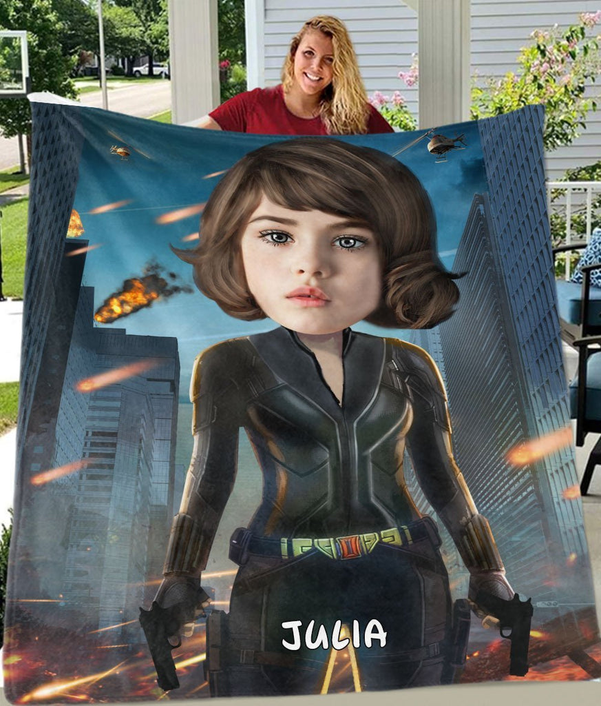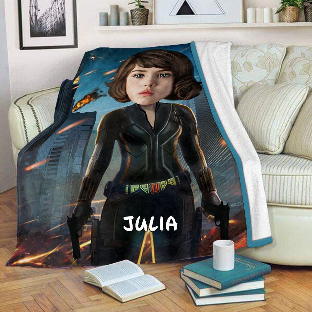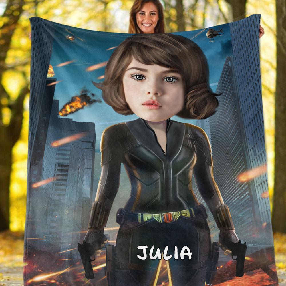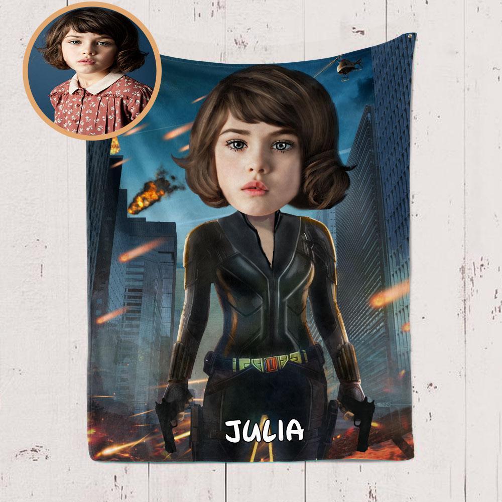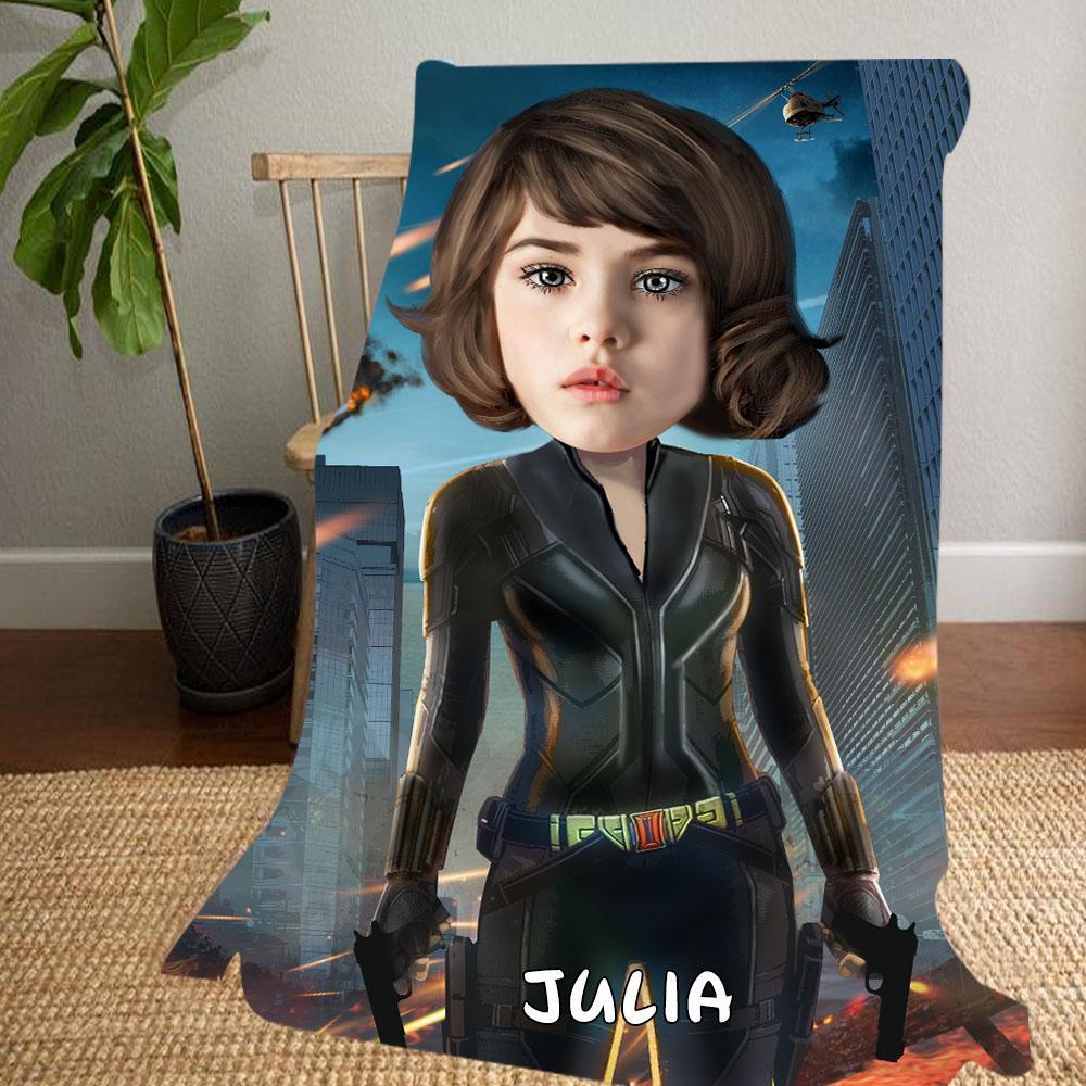 Personalized Black Widow Hand-Drawing Kid's Photo Portrait Fleece Blanket--Made in USA!