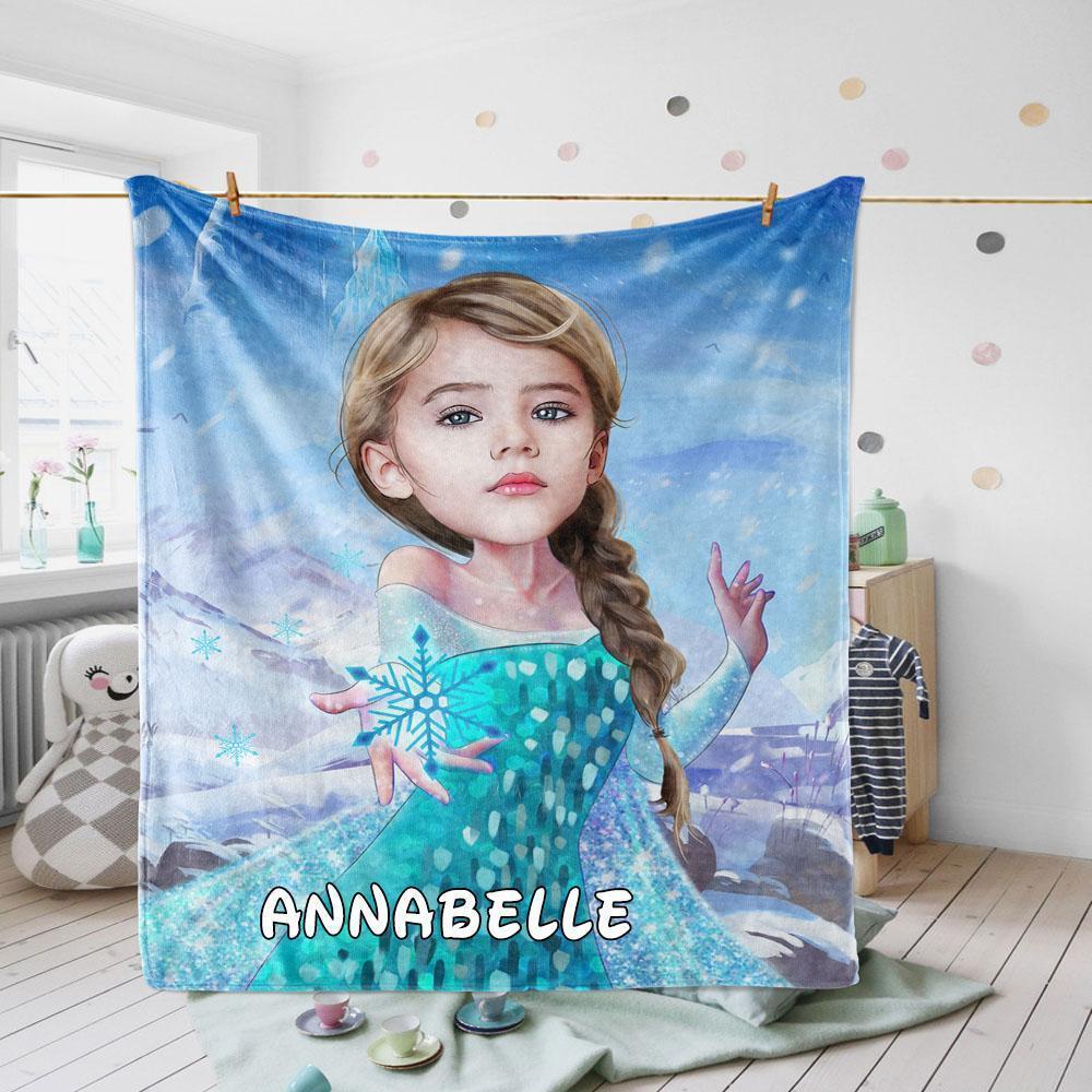 Personalized Elsa Hand-Drawing Kid's Photo Portrait Fleece Blanket--Made in USA!