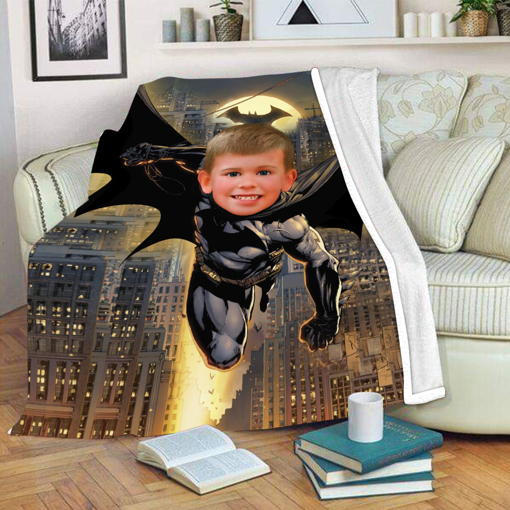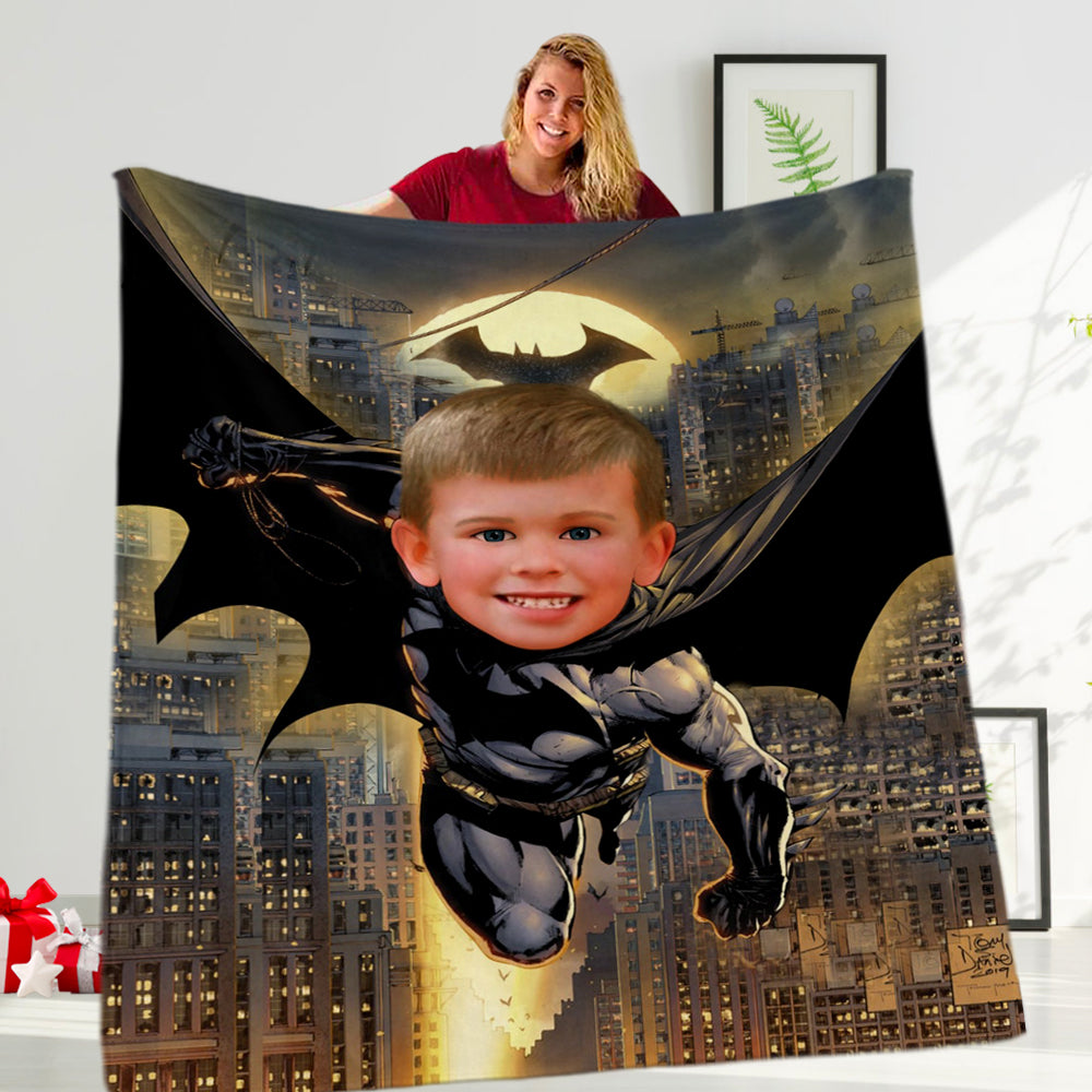 Personalized Hand-Drawing Kid's Photo Portrait Fleece Blanket Batman