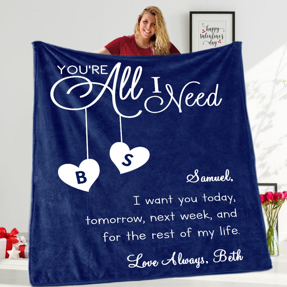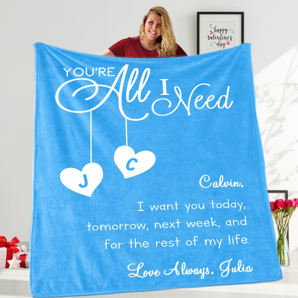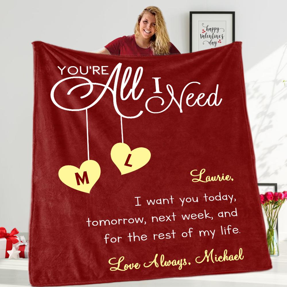 YOU ARE ALL I NEED Custom Name Valentine's Day Blankets