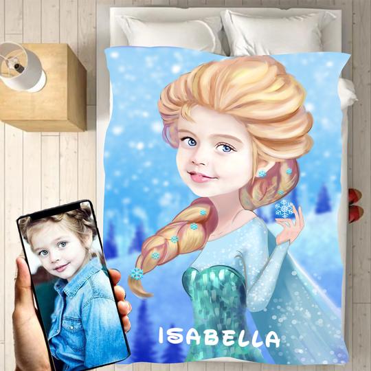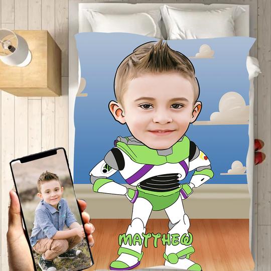 Personalized Hand-Drawing Kid's Photo Portrait Fleece Blanket