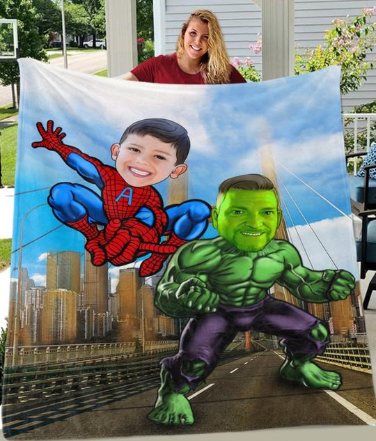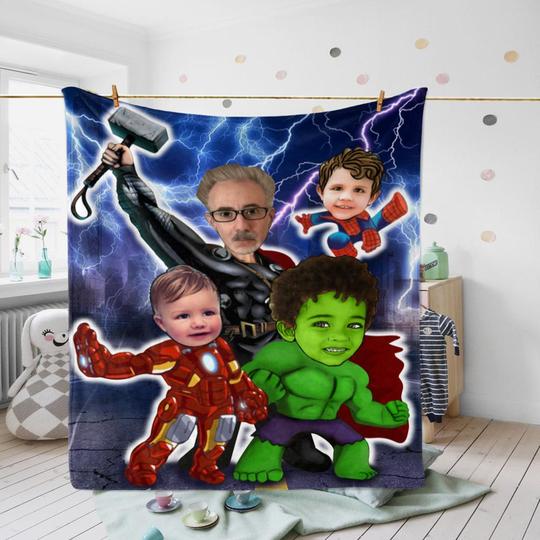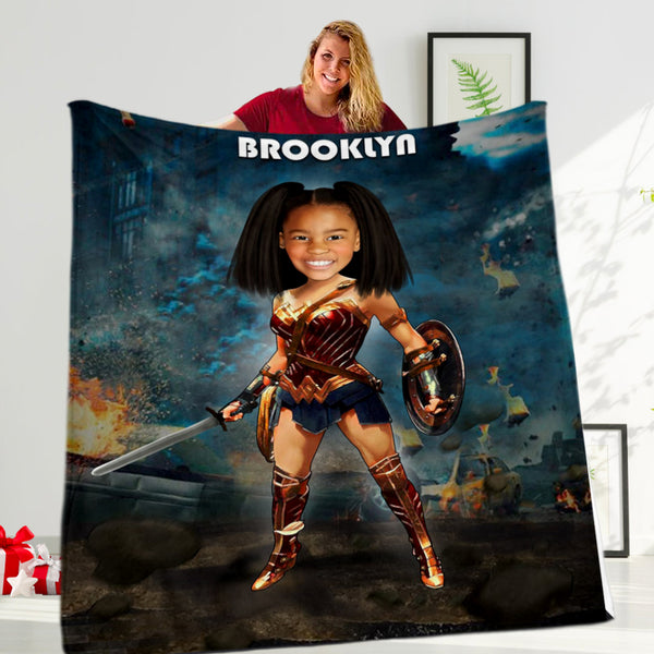 Personalized Hand-Drawing Kid's Photo Portrait Fleece Blanket Wonder Woman Portrait