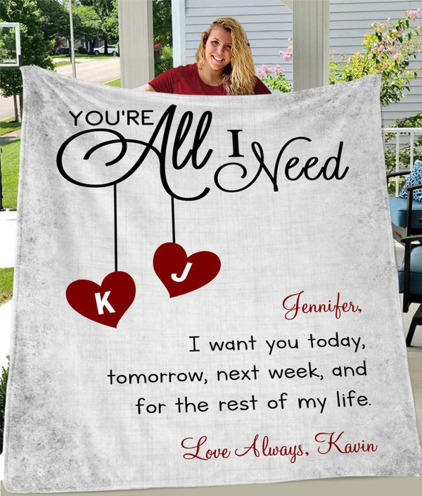 YOU ARE ALL I NEED Custom Name Valentine's Day Blankets