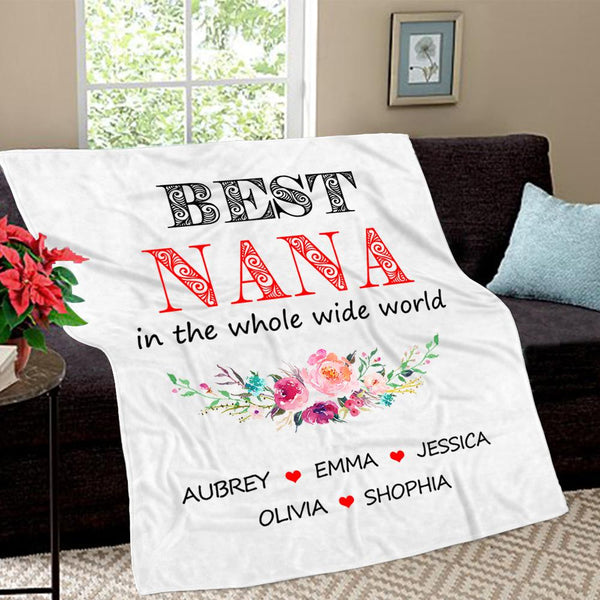 Personalized watercolor flowers Fleece Blankets with Your Nick & Kids' Names