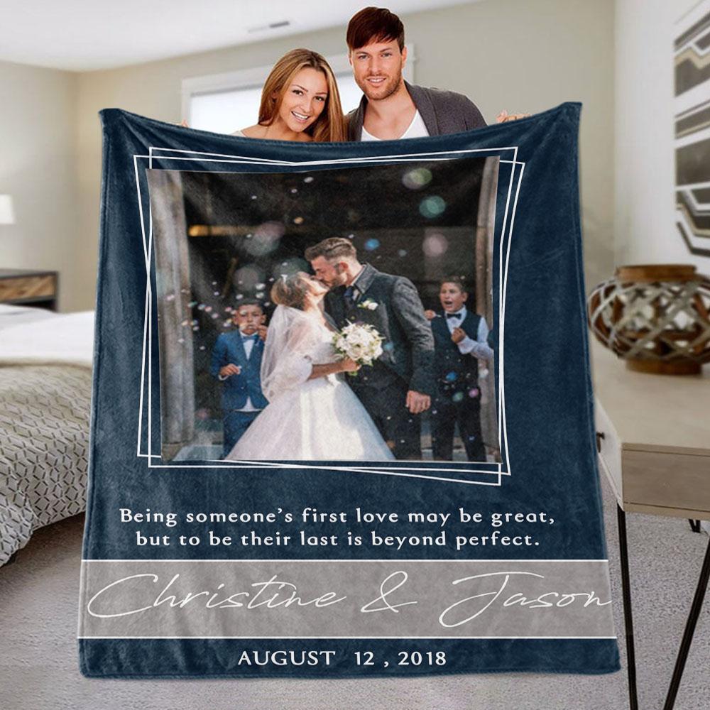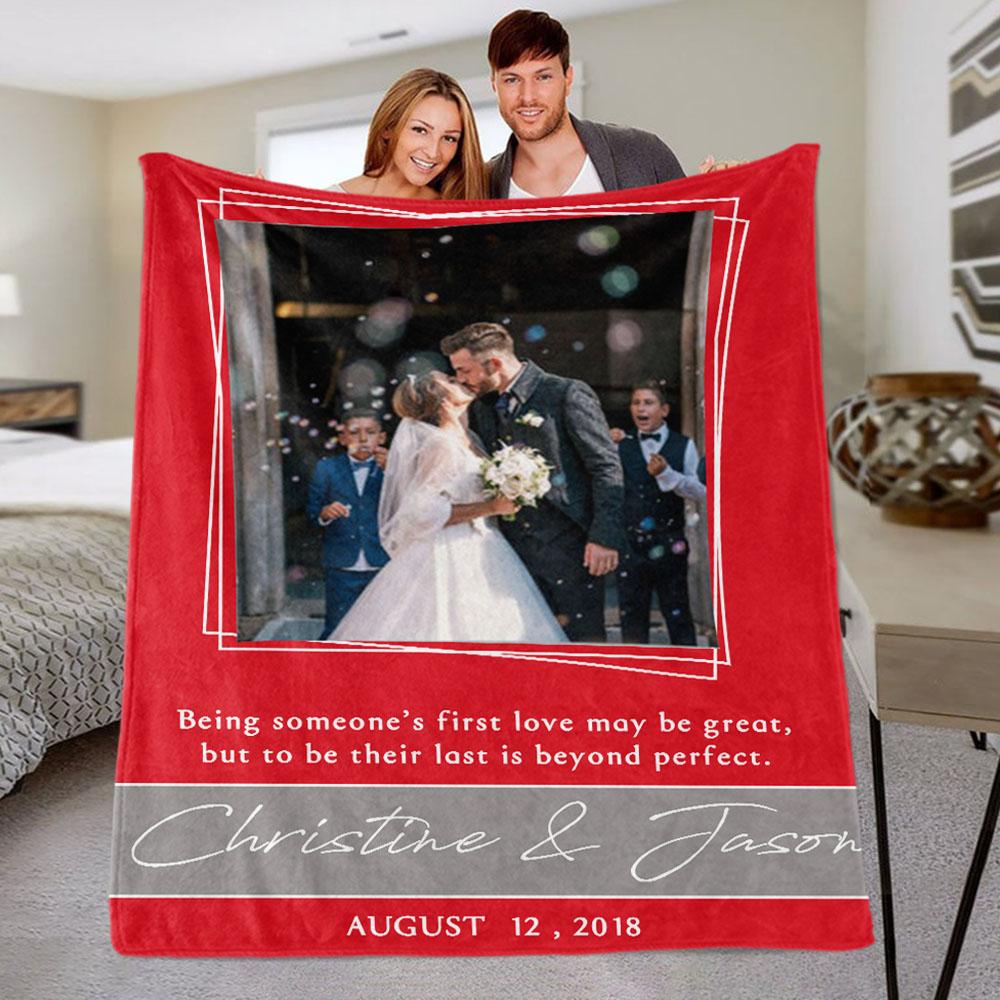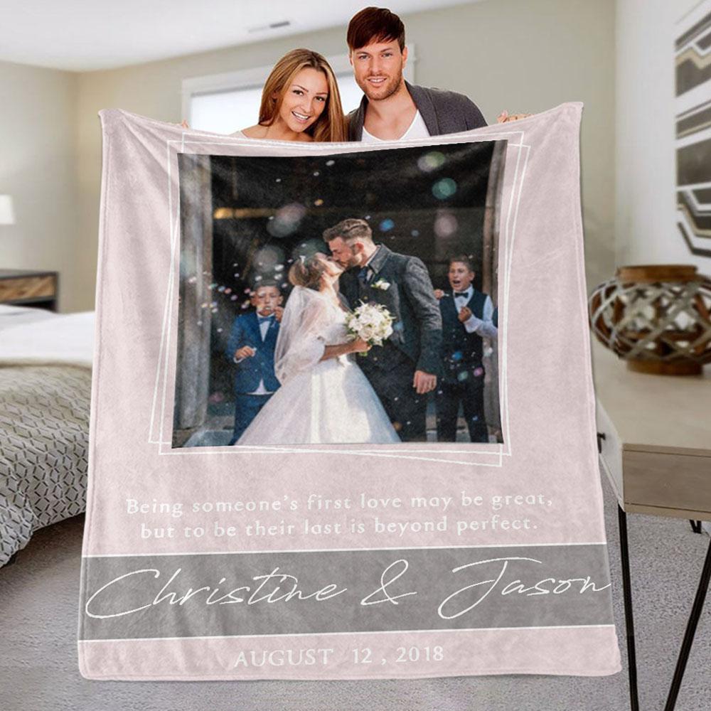 Personalized Anniversary Photo and Name Fleece Blanket, Custom Engagement Gift, Customized Bachelorette Party Bridal Shower Gift, Custom Wedding Gift