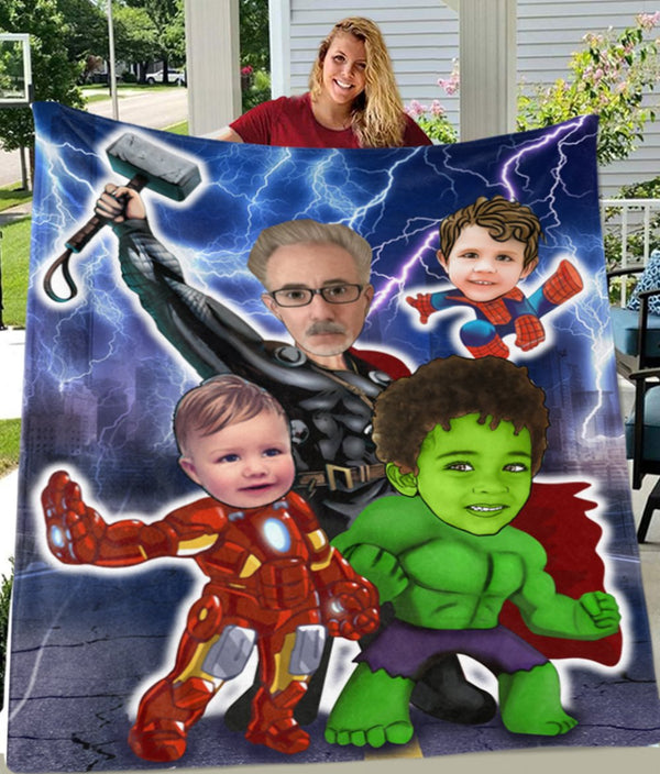 Custom Superhero Portrait Blanket with Photos III- Personalized Gift for Family Members