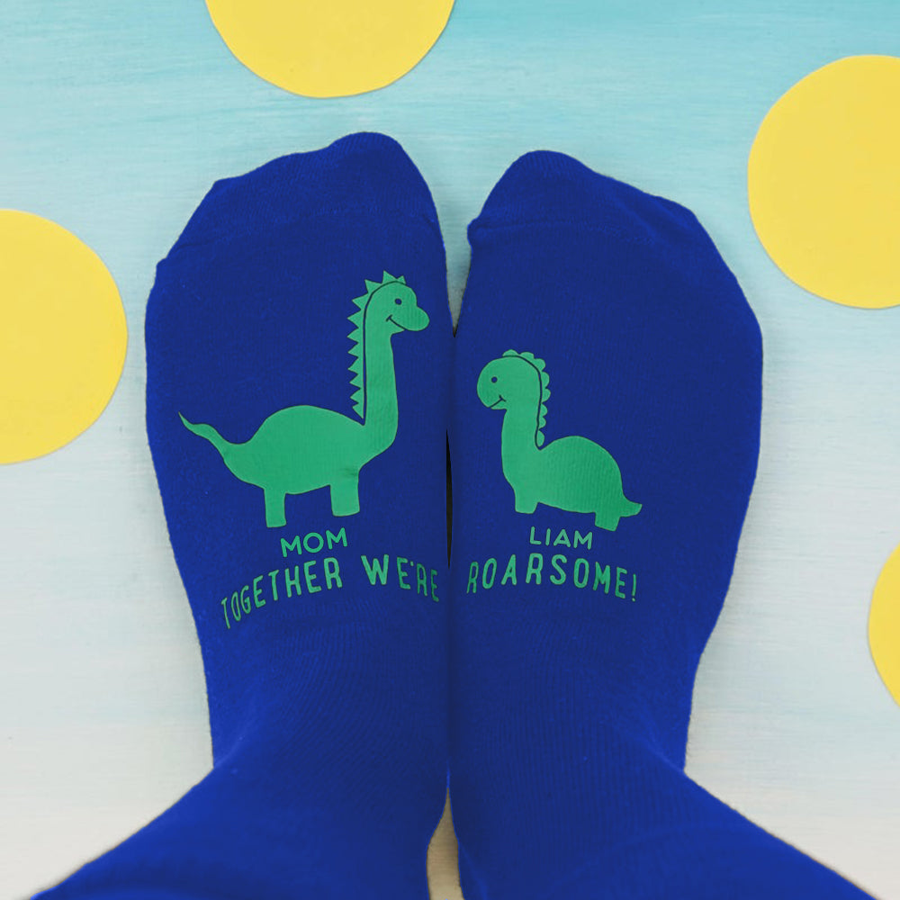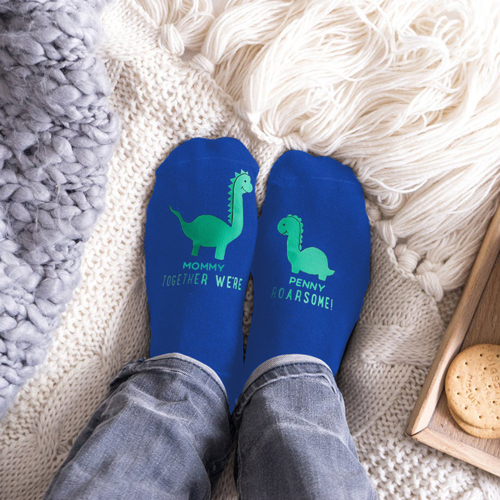 Our Personalized Mummy Dinosaur Socks make the perfect gift for Mom. They are perfect for dinosaur lovers.