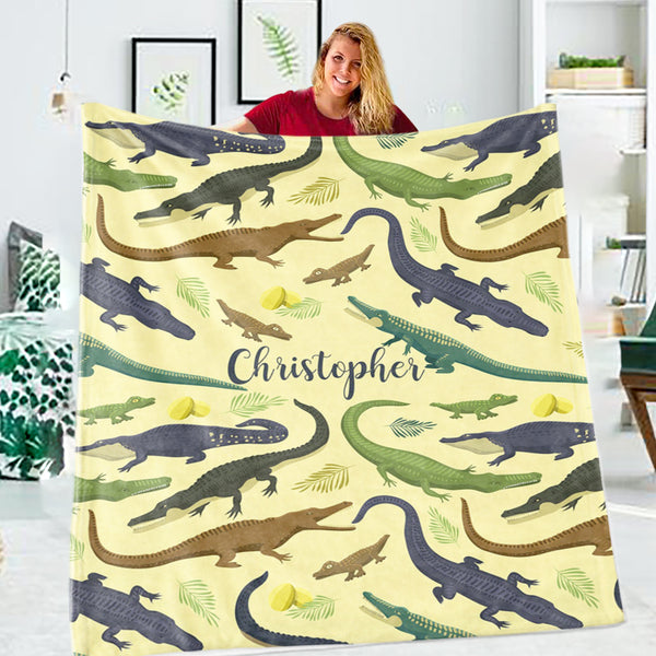 Personalized Crocodile Blanket, Dinosaur Blanket T-Rex, Boy Blanket Dinosaur Name Blanket Toddler Blanket