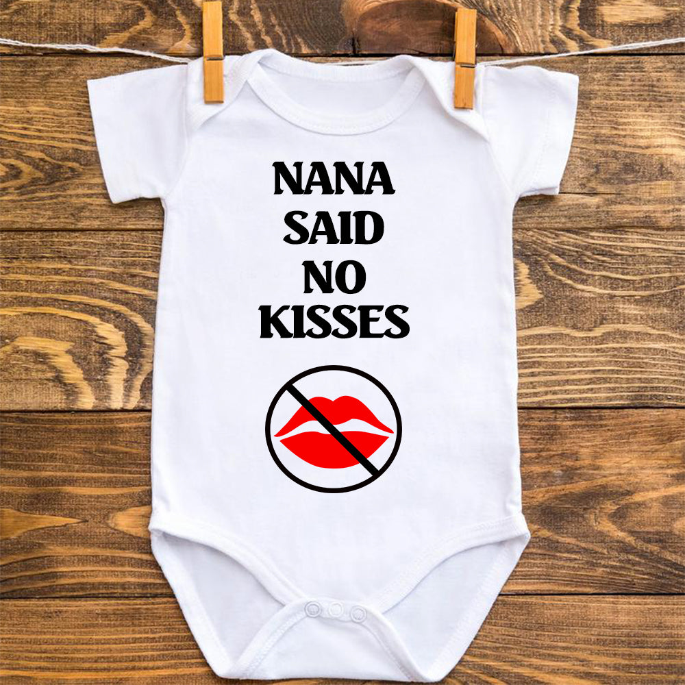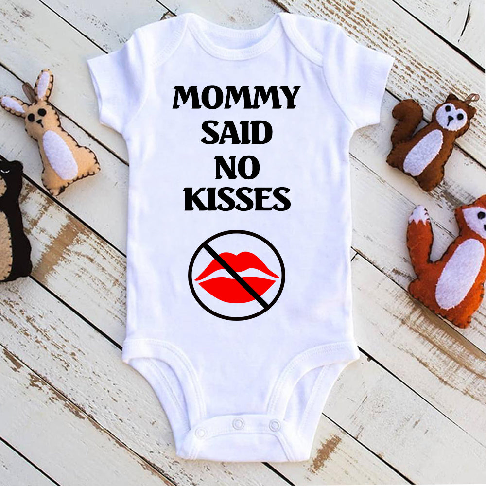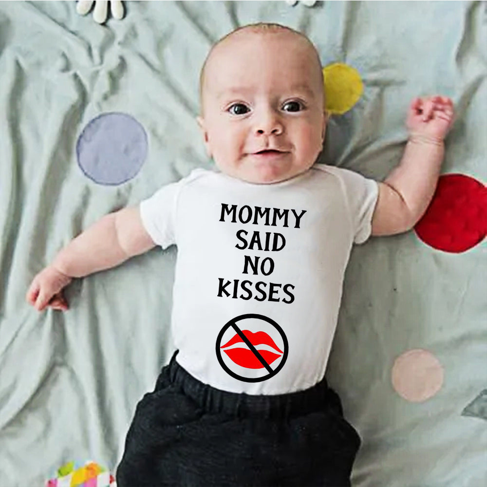 This super cute baby onesie reads "My Mommy said don't be kissing on me. We don't know where your lips have been." The title can be customized as "Mommy, Daddy, Grandma, Papa, etc." This is the perfect baby gift for a boy or a girl. What a great way to let everyone know not to kiss on the new baby. This is great for a baby shower gift, or for just a because gift to the new mom.