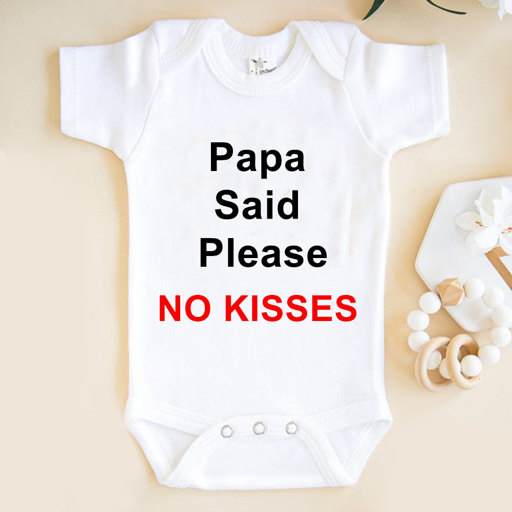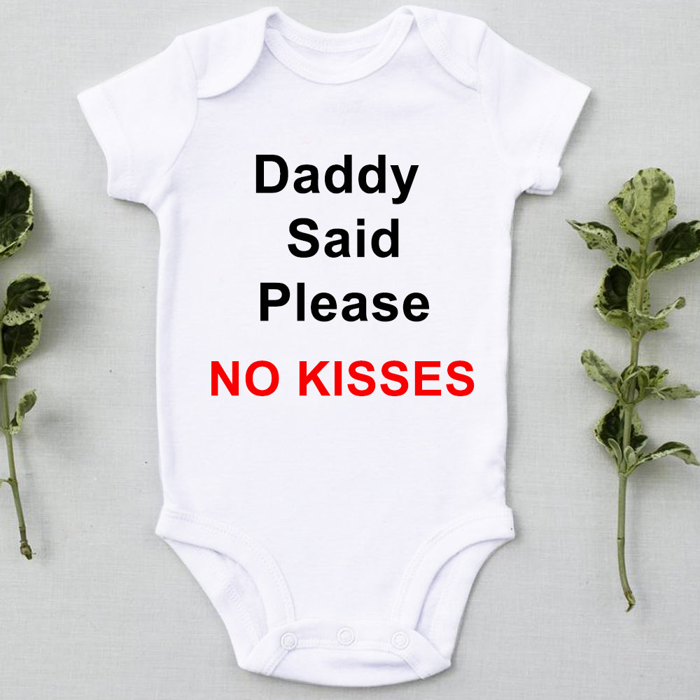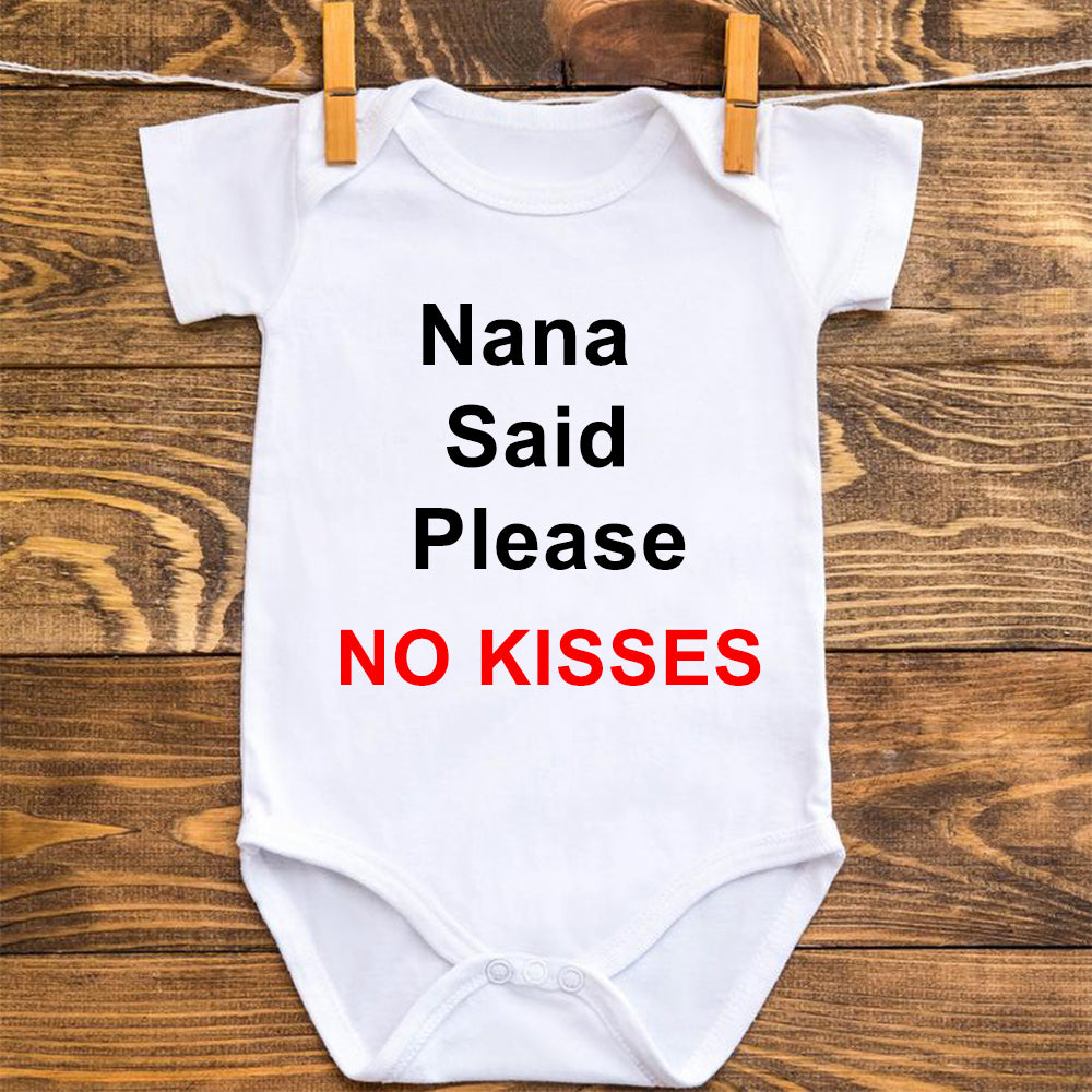 This super cute baby onesie reads "My Mommy said don't be kissing on me. We don't know where your lips have been." The title can be customized as "Mommy, Daddy, Grandma, Papa, etc." This is the perfect baby gift for a boy or a girl. What a great way to let everyone know not to kiss on the new baby. This is great for a baby shower gift, or for just a because gift to the new mom.