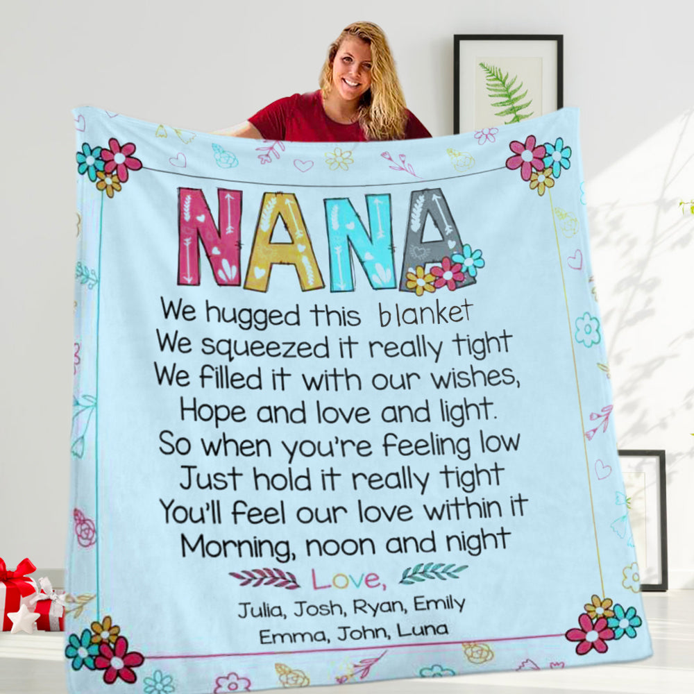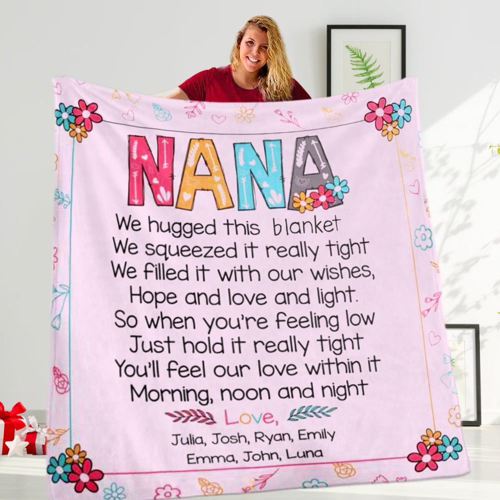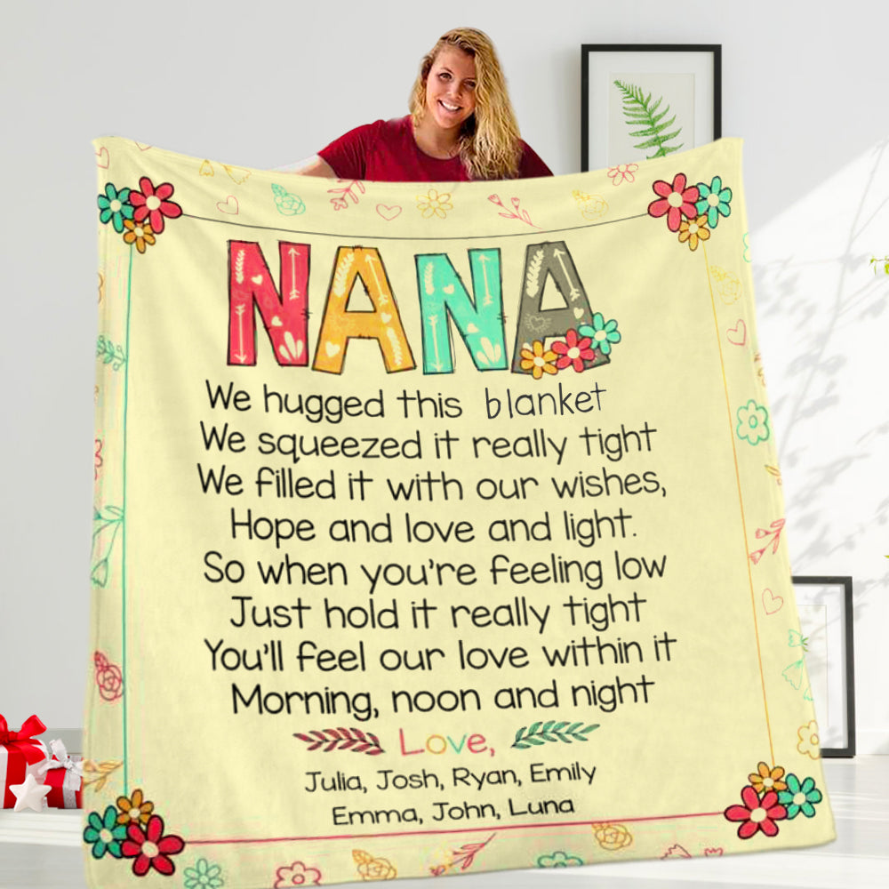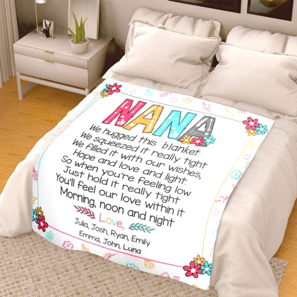 Personalize this blanket with your Nickname of a loved one & her grandkids' or kids' names!