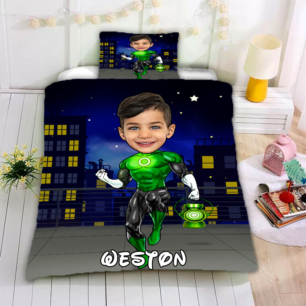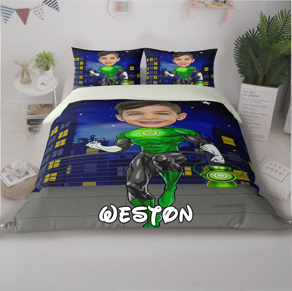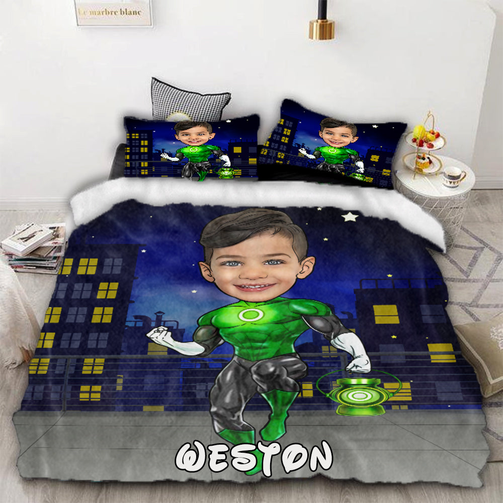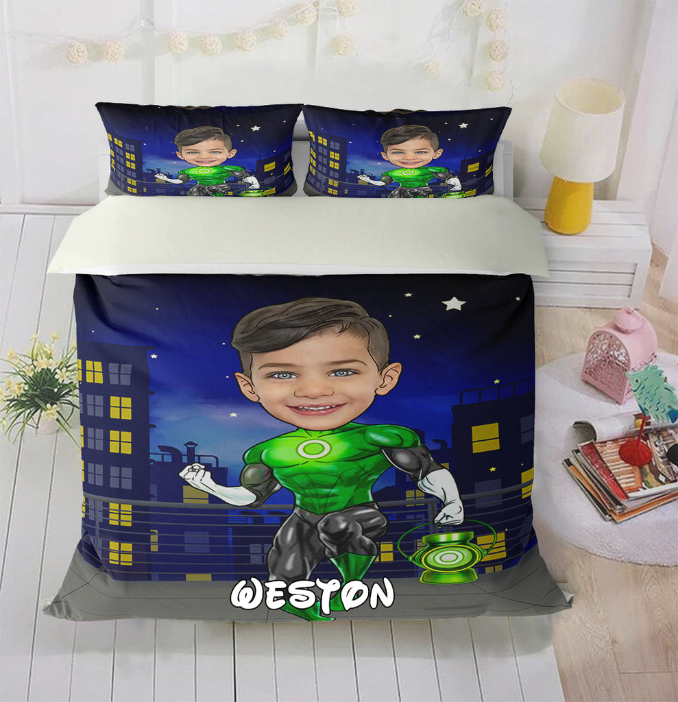 Personalized Hand-Drawing Kid's Photo Portrait Cozy Microfiber Bedding Set XV