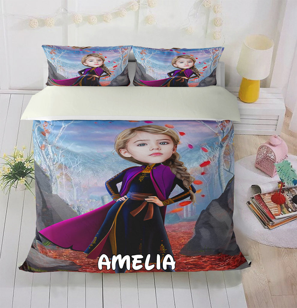 Print portrait and name on super cozy bedding set and make your loved one jump on her/his bed for a sweet night sleep.