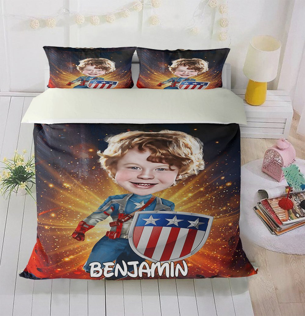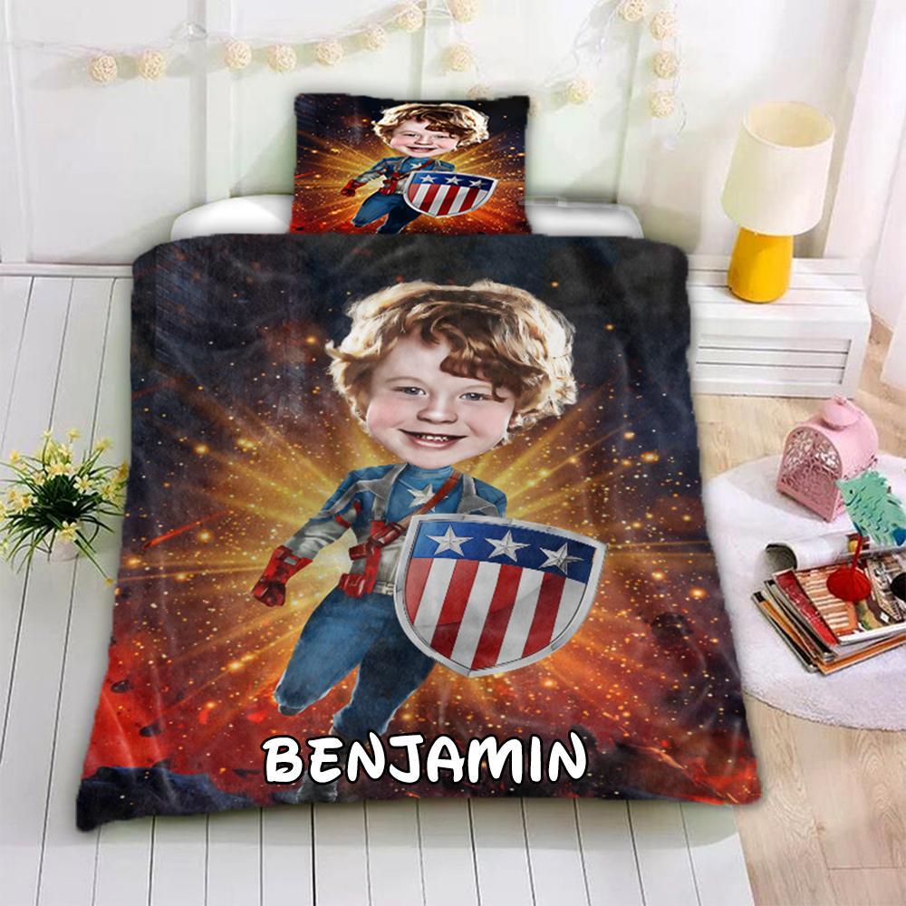Personalized Hand-Drawing Kid's Photo Portrait Cozy Microfiber Bedding Set IV