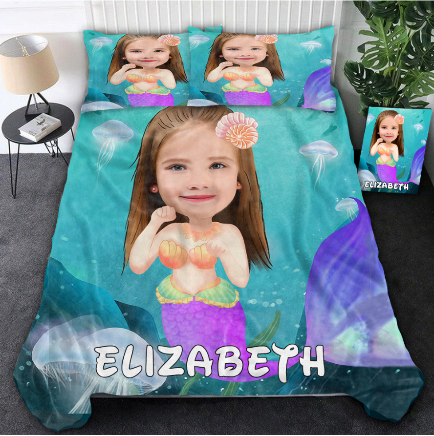 Print portrait and name on super cozy bedding set and make your loved one jump on her/his bed for a sweet night sleep.