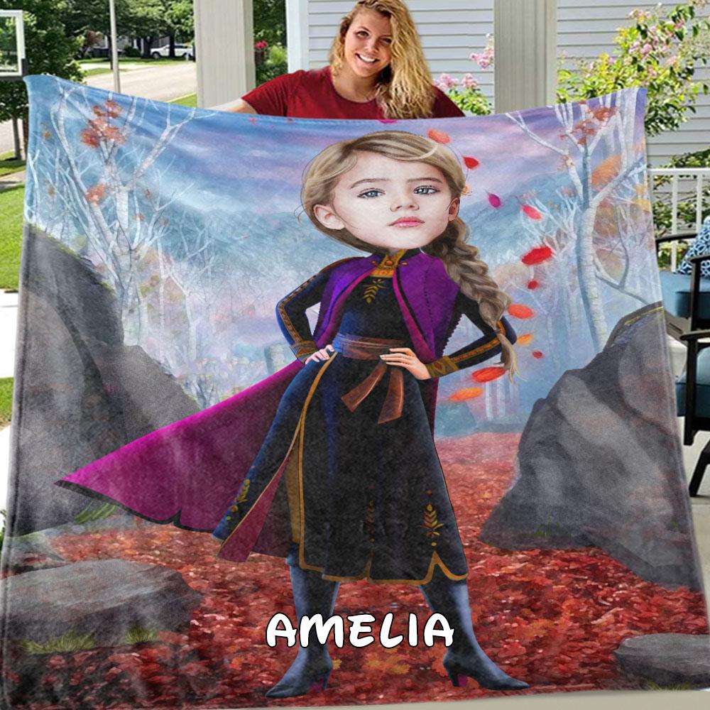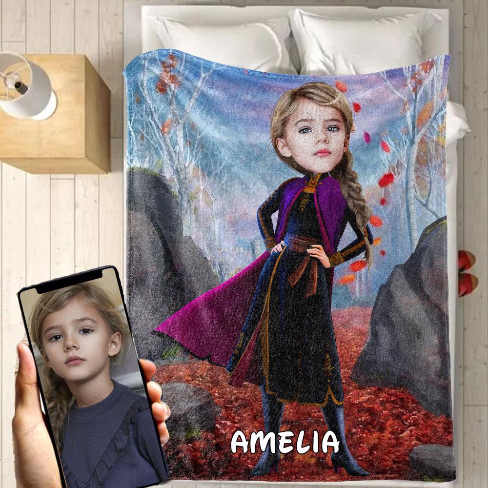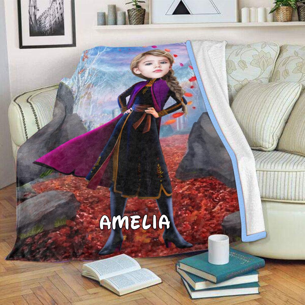 Personalized Hand-Drawing Kid's Photo Portrait Fleece Blanket XV