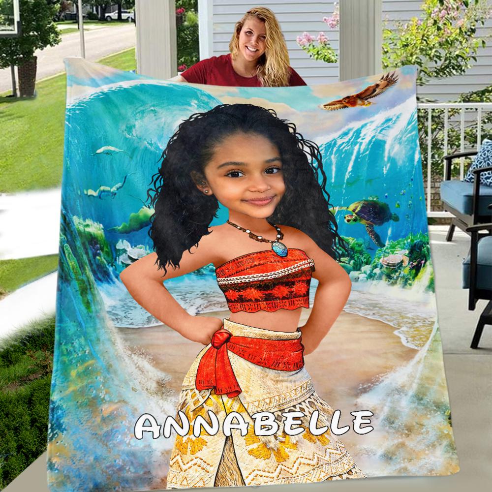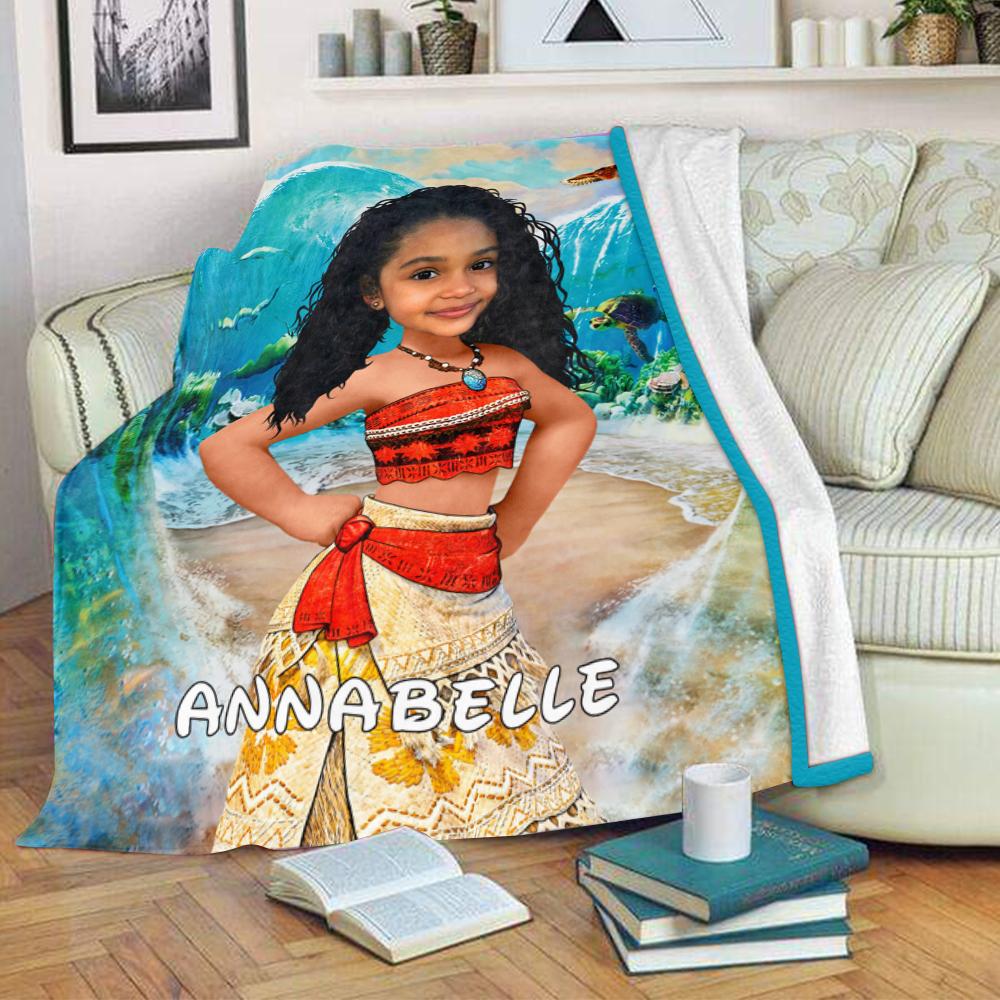 Personalized Hand-Drawing Kid's Photo Portrait Fleece Blanket XXIV
