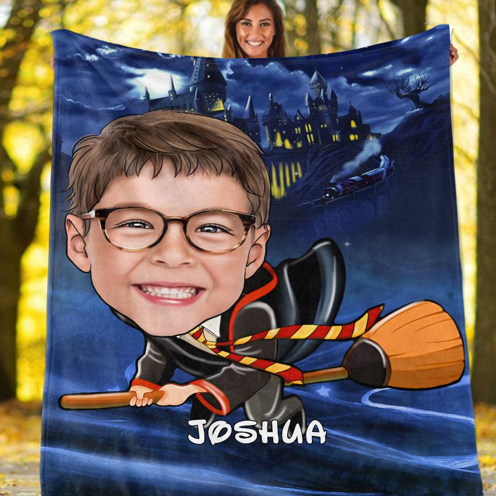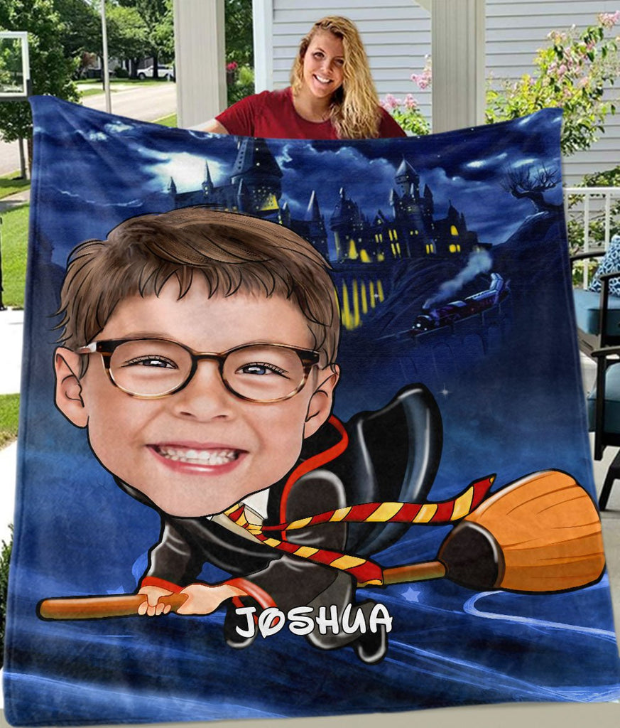 Personalized Hand-Drawing Kid's Photo Portrait Fleece Blanket IX
