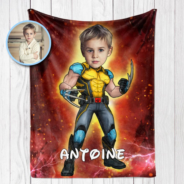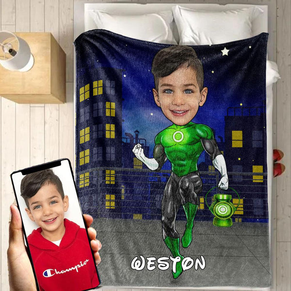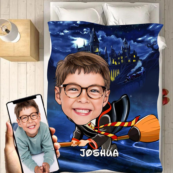 Personalized Hand-Drawing Kid's Photo Portrait Fleece Blanket IX