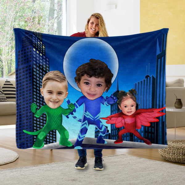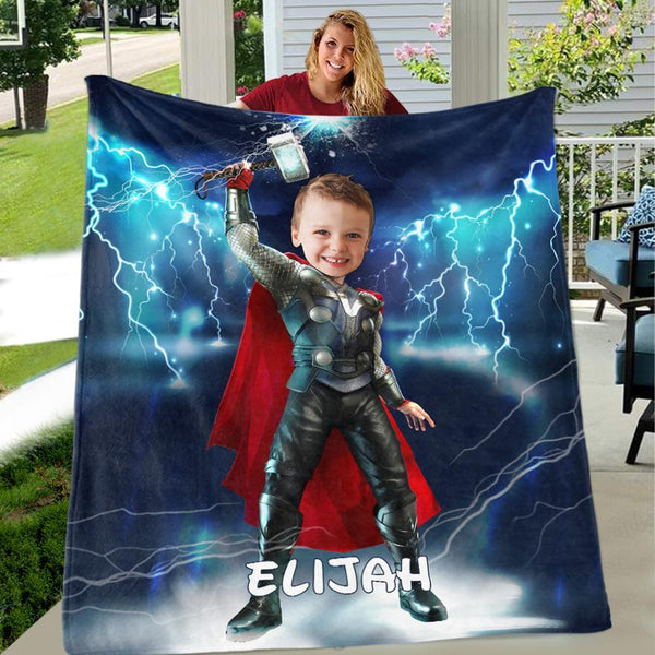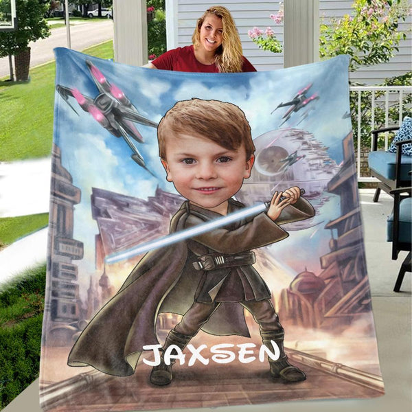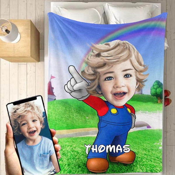 Personalized Hand-Drawing Kid's Photo Portrait Fleece Blanket XVI