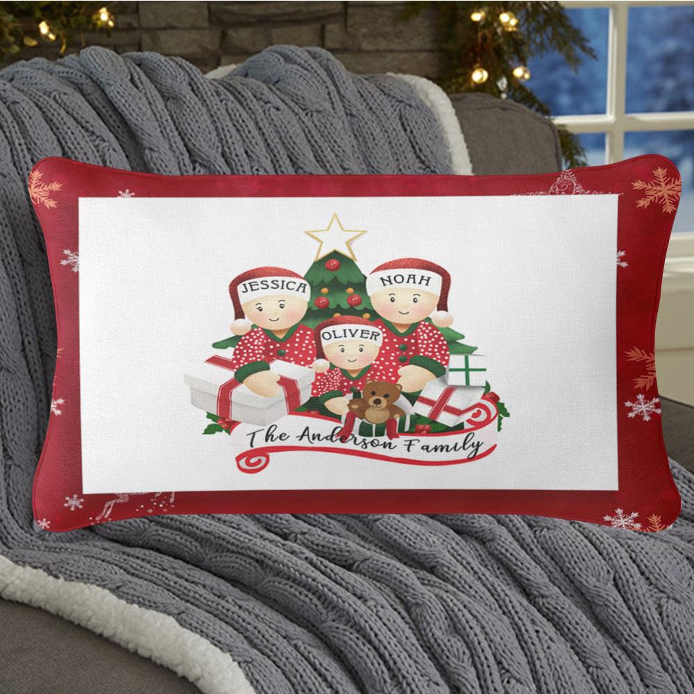 Add some holiday flare to your chair or sofa with our Personalized Chrietmas Snowman Family Pillow. The printed Christmas Snowman design is sure to add a festival winter cheer to any home decor.