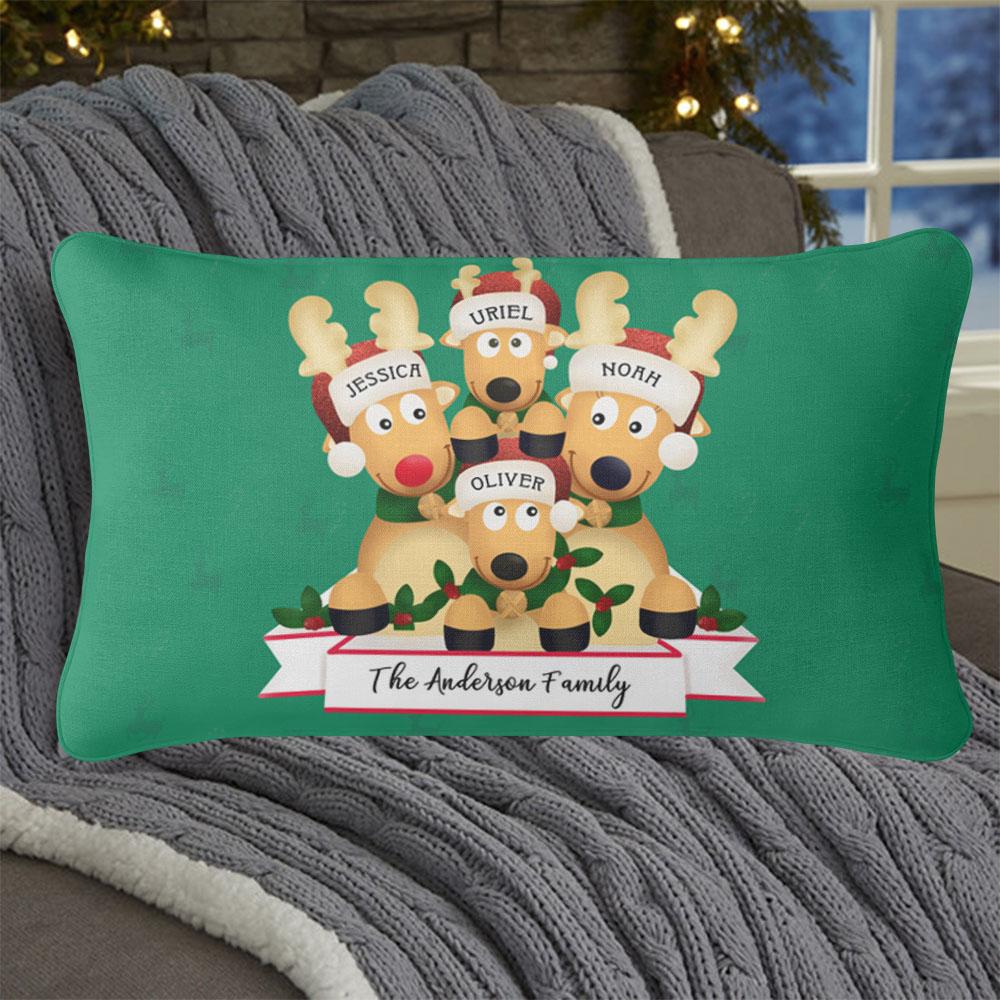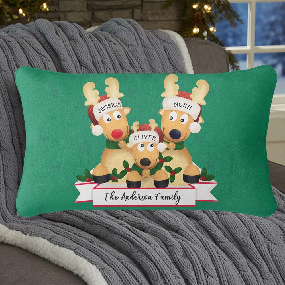 Add some holiday flare to your chair or sofa with our Personalized Chrietmas Deer Family Pillow. The printed Christmas deer design is sure to add a festival winter cheer to any home decor.
