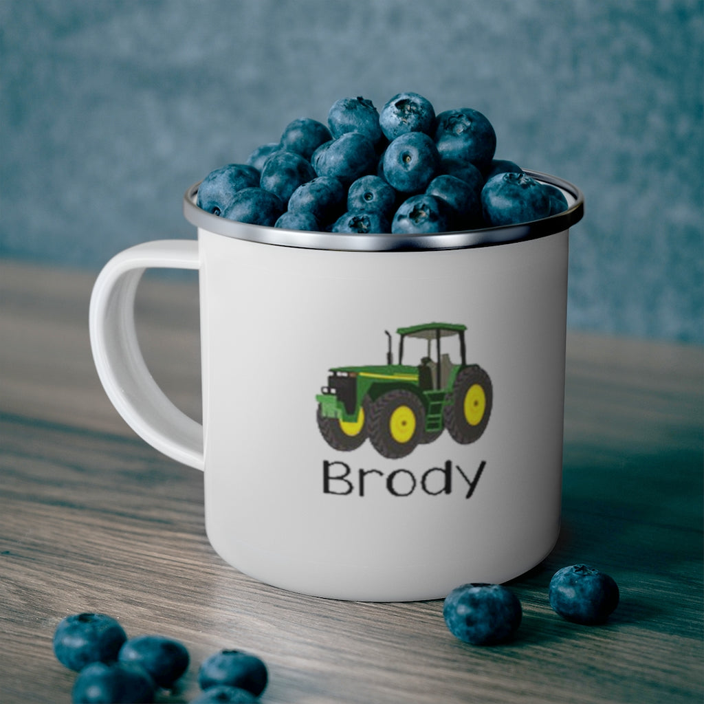 Get this unique, durable name enamel mug that holds 12 ounces of your favorite beverage.