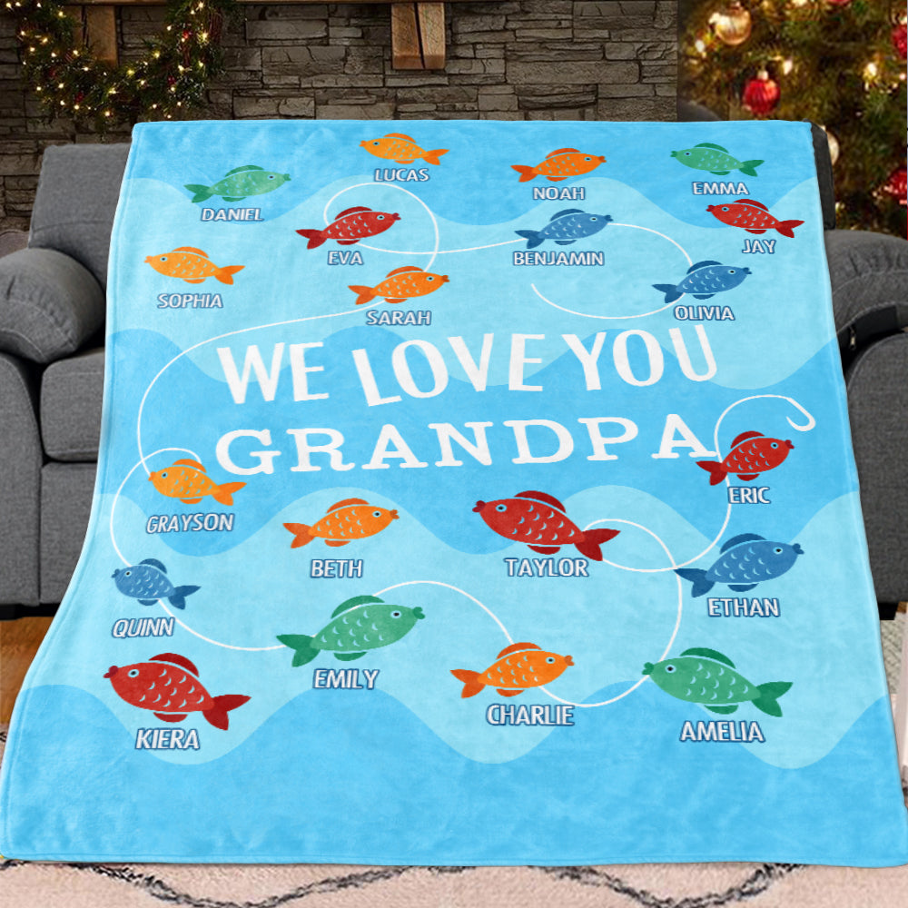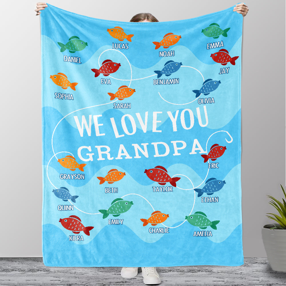 Custom Little Fish Grandparent Blanket with Kids' Names