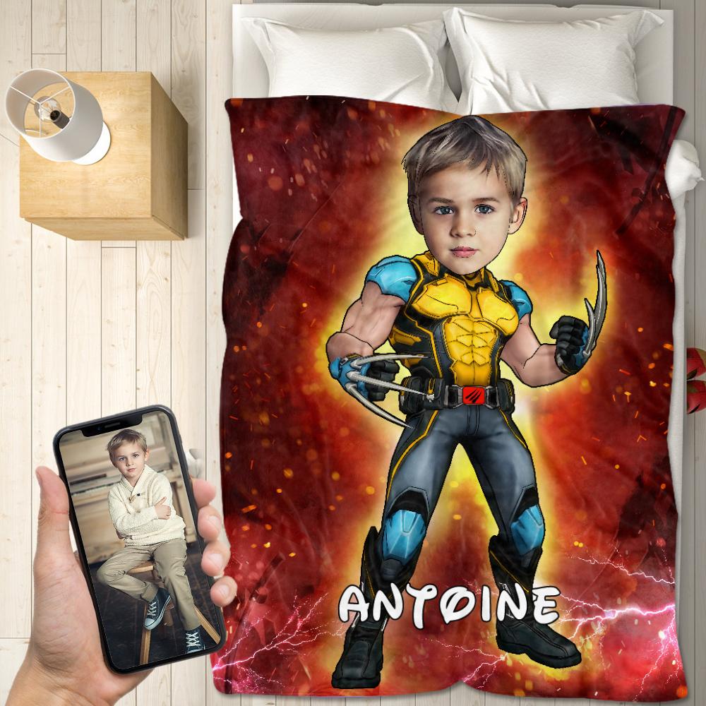 Personalized Hand-Drawing Kid's Photo Portrait Fleece Blanket XXII