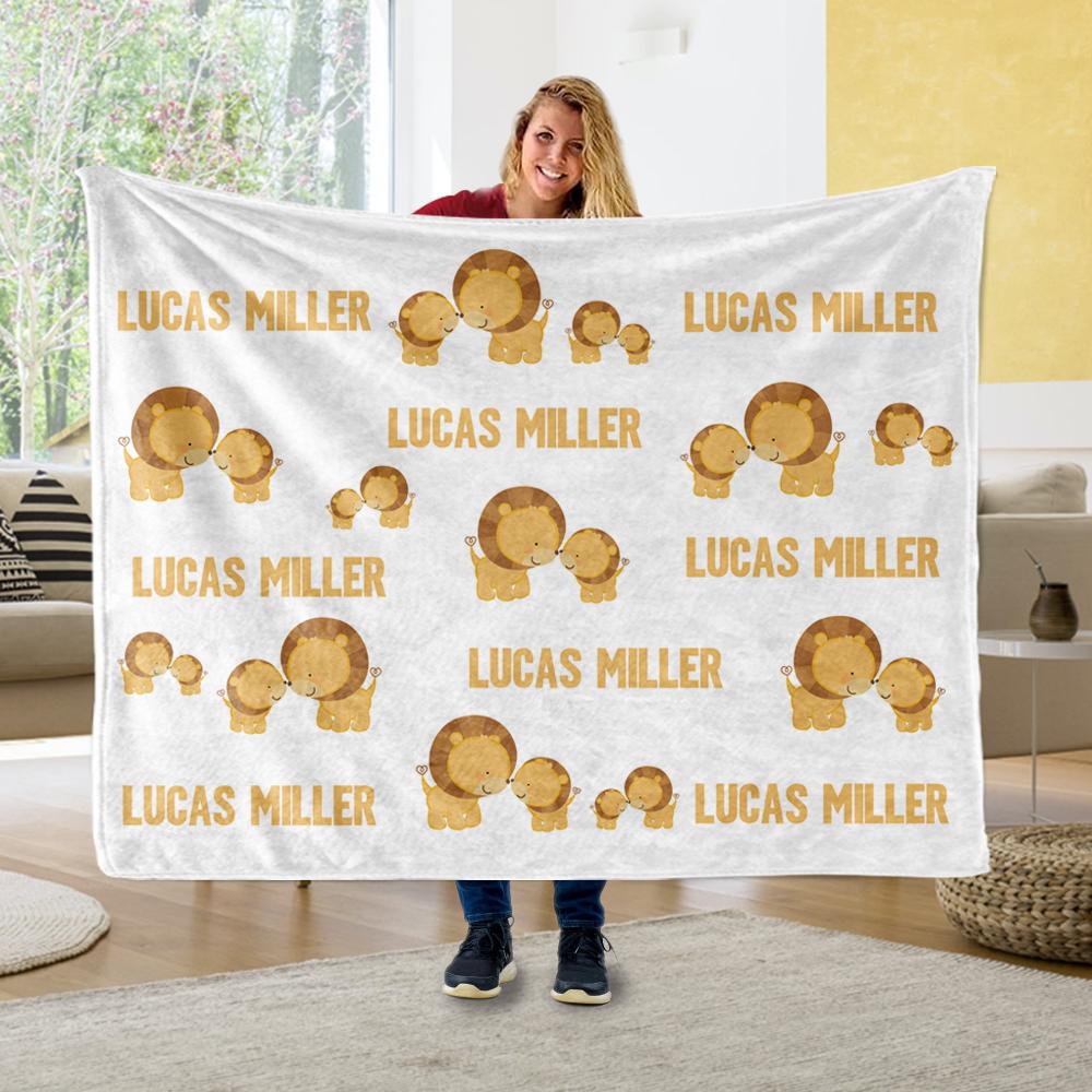 Personalized Name Lion Cozy Plush Fleece Blankets - BUY 2 SAVE 10%