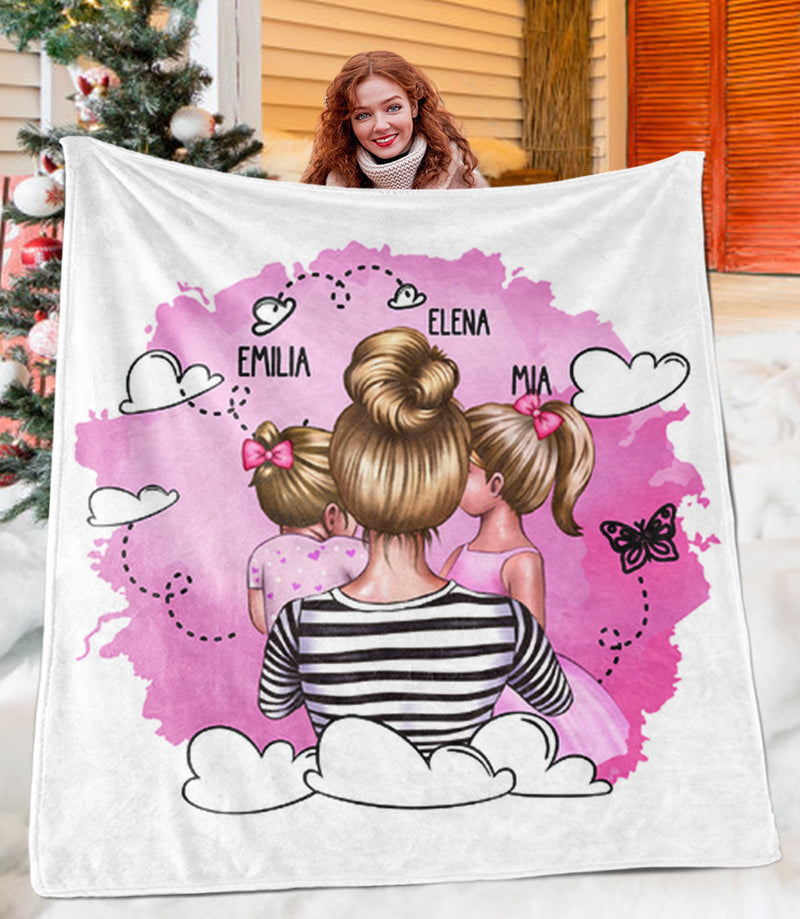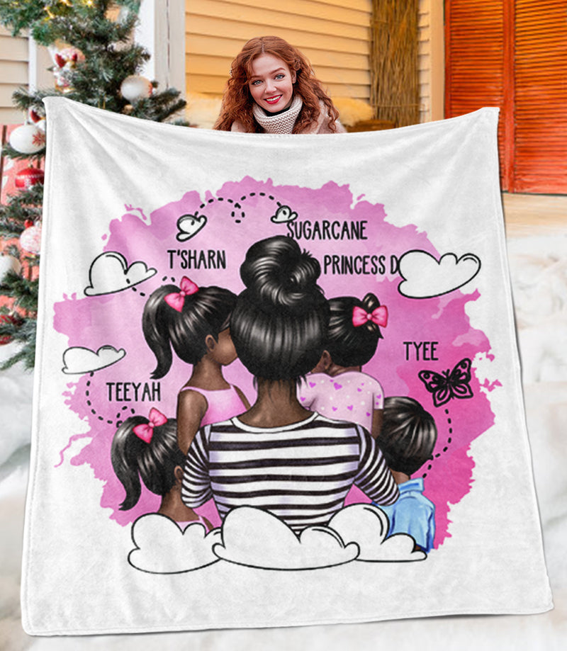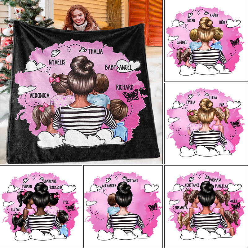 Personalized WATERCOLOR Mom Blanket With Her Children